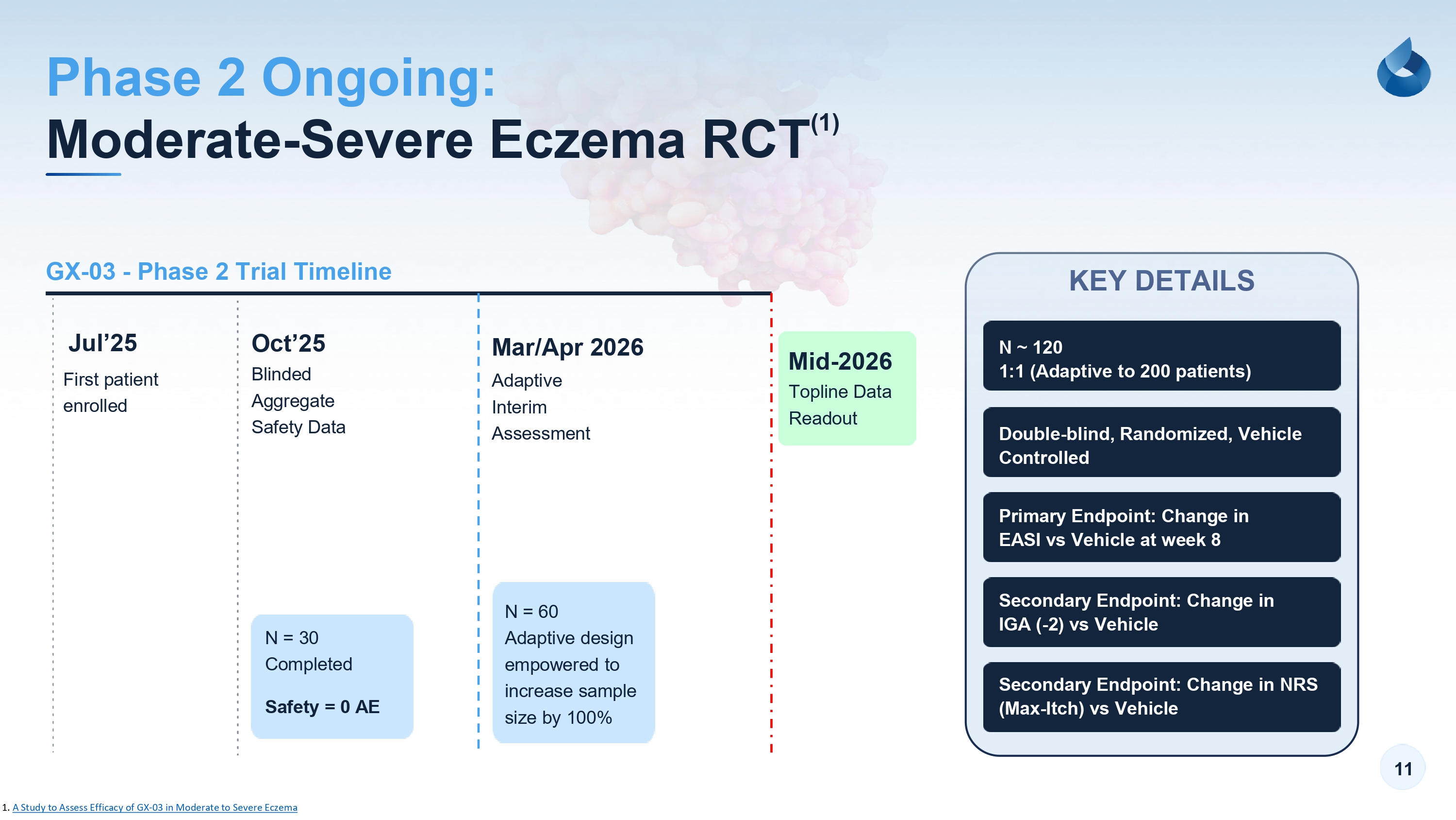 The Company will provide an update on its dermatology pipeline, including the status of the ongoing Phase 2 clinical trial evaluating GX-03, the company’s lead investigational therapy for moderate-to-severe atopic dermatitis (eczema). Management will also participate in one-on-one meetings with institutional investors.